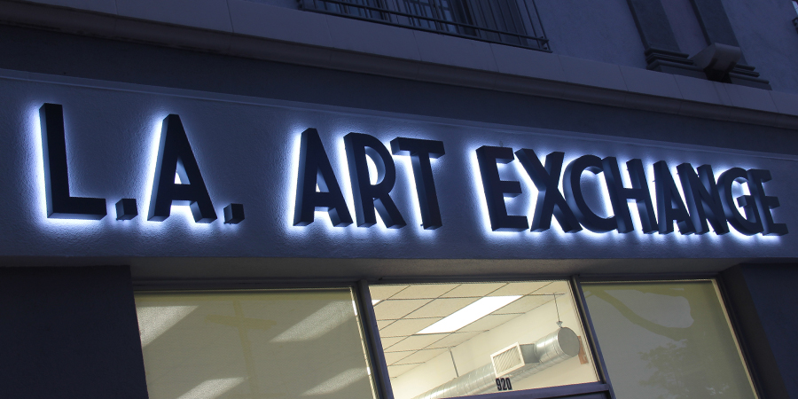 The LA Art Exchange is an art dealer and custom framing business based in Santa Monica, California. This sign features black aluminium letters with white LED's creating the glow behind each letter.