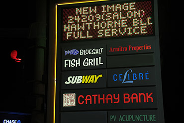 Fine Signs of LA is a leading LED sign manufacturer in the Los Angeles area based out of the South Bay and we always use cutting-edge LEDs in our signage. For monument signs we strongly recommend using LED lights instead of flourescent bulbs or neon. Click here to learn more about the high quality LED bulbs we use in our signs and why our signs shine brighter and last longer then our competition!